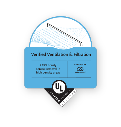 - ~Building owner-operator is issued the UL Verified Ventilation & Filtration Mark, a UL Marketing Claim Verification Mark, if a building passes the Desktop Review and achieves 99% aerosol removal within 1 hr. in all test locations.